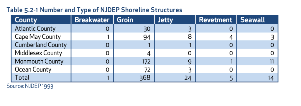 My first set of data is a geographical set taken from the New Jersey Department of Environmental Protection. This is a highly trusted government website and the case study that I found this data set on has been verified by scientists’ multiple times. This dataset highlights the different types of Shoreline Structures each county has and the number of them that each county has.