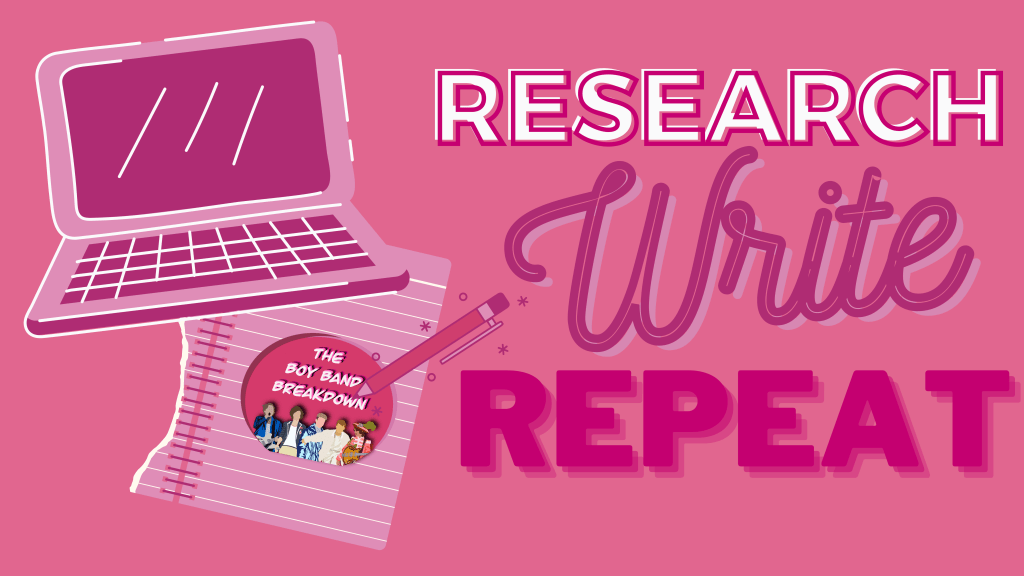 After completing each intro and outro for each episode, I went on and continued to write the entire script for the 3rd episode. My personal favorite video is going to be the third one because the boy bands that I talk about are the ones that I’m actually huge fans of. So this script was the easiest to write about.