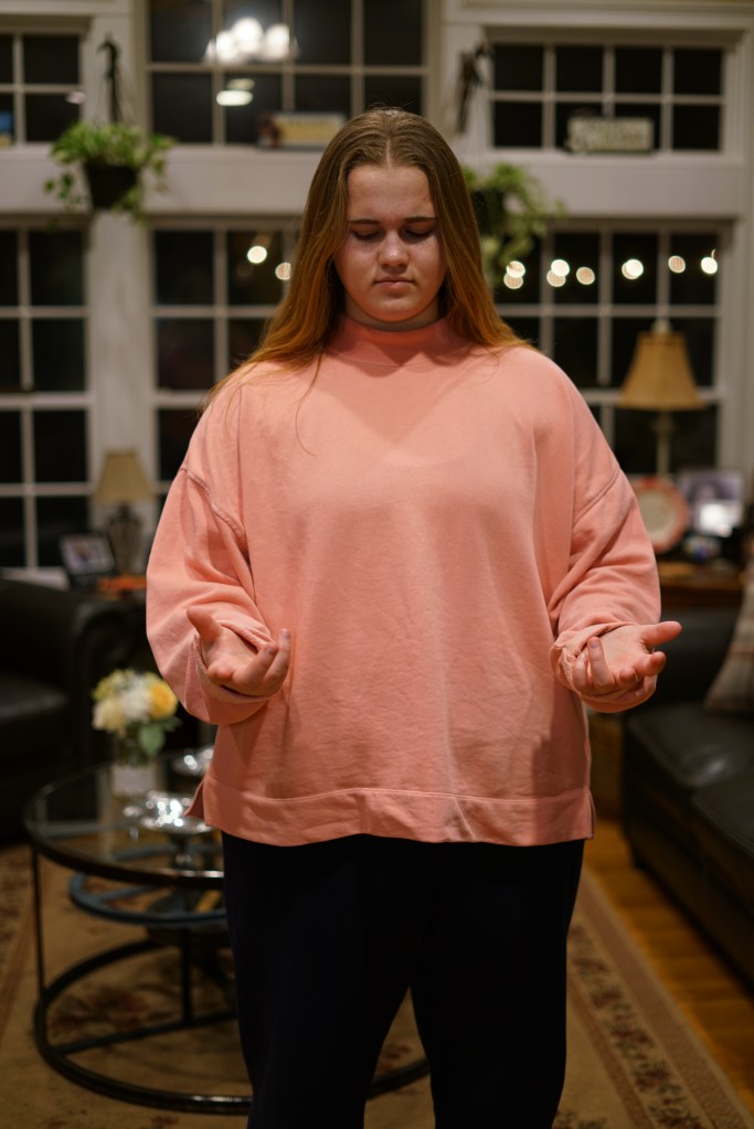 Then I needed an outfit, I realized I still owned one boy band shirt that would still fit, my Jonas Brothers one from last November’s tour and threw on my favorite blazer. Finally I was ready to start recording. And that’s when I hit the next challenge. I knew I was going to be alone to film, so I figured I would let my audio and video run for as long as it took for me to get a full take of each section, but what I didn’t realize was that I was going to need a teleprompter in order to remember everything I had written. So this resulted in me using my iPad and propping it up right under the camera lens using an old wooden table and 4 of my sister’s text books. With that all set, I was ready to go. It took a whole but after a few hours I had recorded each section for all 3 episodes.