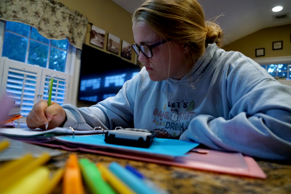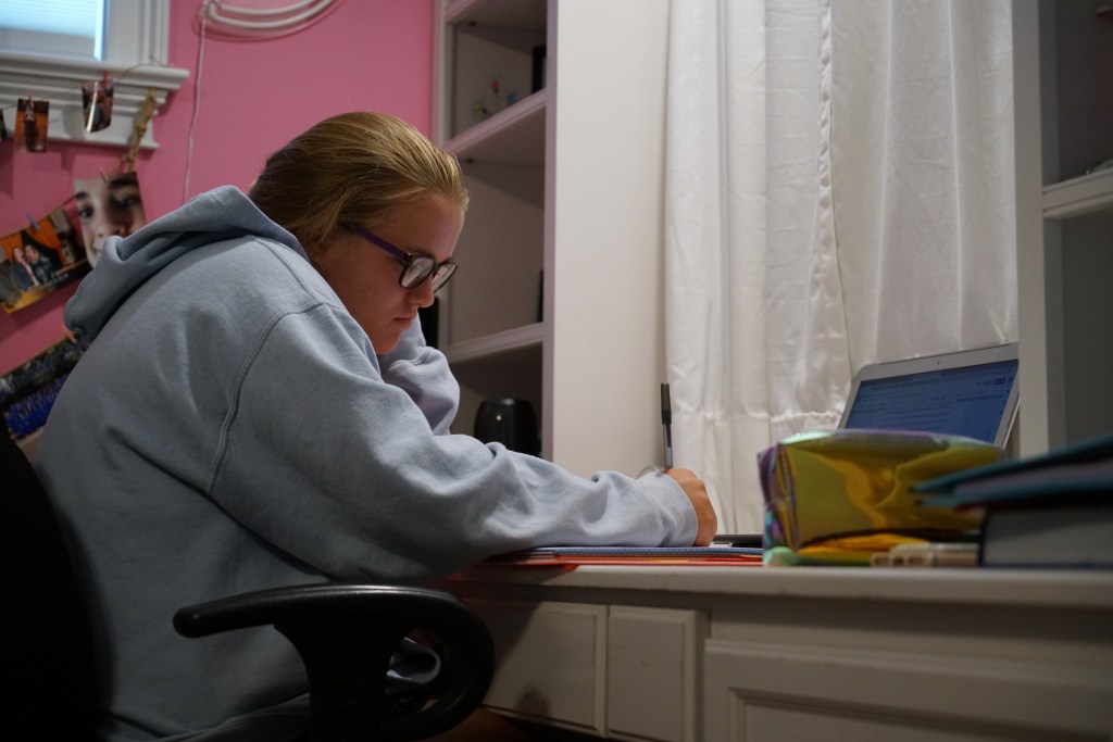 After taking hundreds of photos of her for hours, I scrolled through all of them and picked the ones that I kept finding a theme through. That theme being, distractions. That was the story I was trying to tell. Even though schools and teachers are trying to keep class interesting and trying to give students all the resources they need to get through the year no teacher or faculty member can combat with at home distractions, like food, phones and the TV.