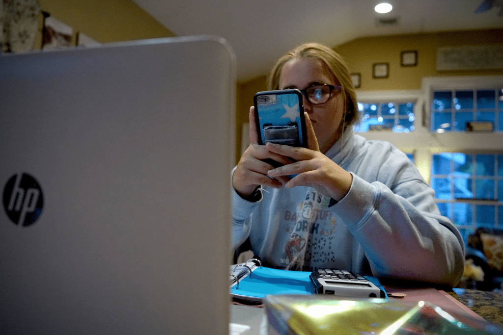 Of course, the biggest distraction is the unlimited use of their phones. At school their phones are either off in their lockers or their book bag and teachers take them away if they see them out, but who’s to say no when no one is around. Both of Kelly’s parents have jobs too. They aren’t home to reprimand her either. She’s on her own and she spaces out often.