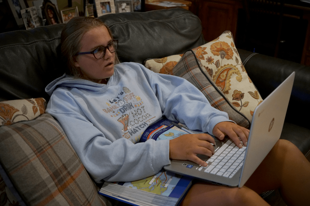 Living at home this year to complete my final year of school has definitely been a challenge, but it is nowhere near as bad as the younger generation of students who are stuck day in and day out on zoom trying to get through elementary, middle, and high school. With this in mind I was going to show my younger sister’s story. I decided to follow her around all day from the moment she woke up and opened her computer to the moment her last assignment was submitted and she could close her computer. In another article on visual storytelling, the photographer Lynn Johnson described new age photojournalism to be the need to “have the courage to look onward as well as inward”. In this project the goal wasn’t just to take a few photos and get a surface look at Kelly’s day. I wanted to see it all and then pull my story from everything I shot.