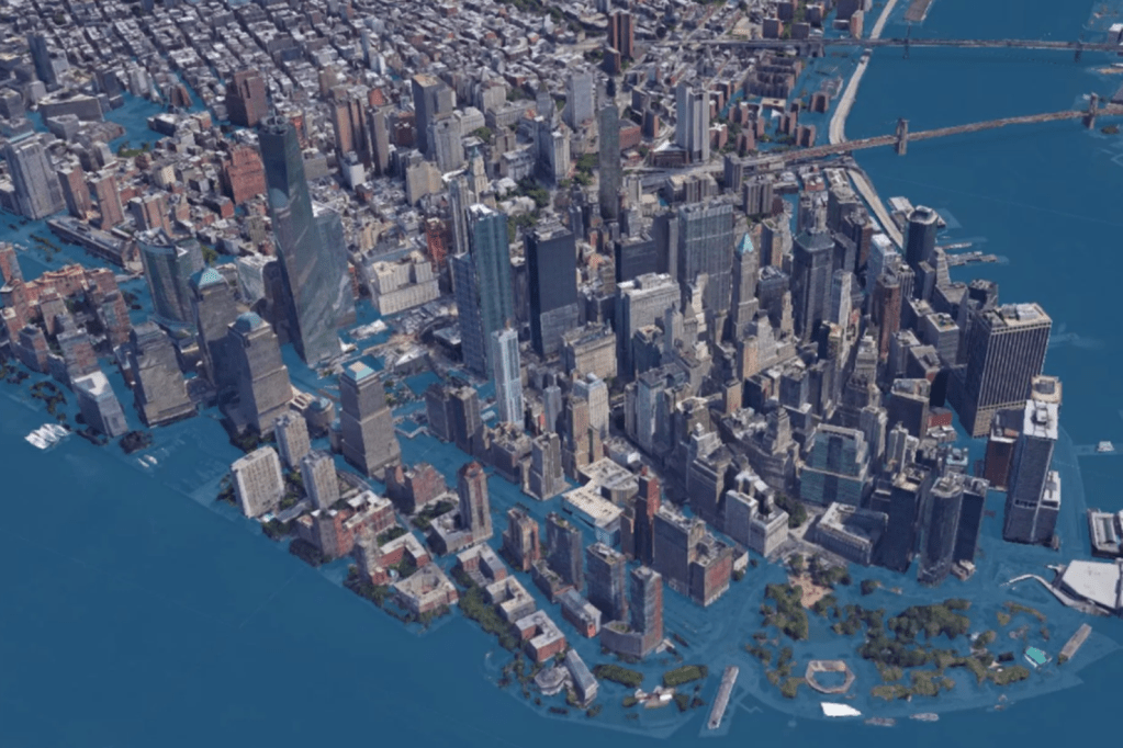This image is a graphic rendering of what New York will look like if the levels rise by 8ft. It was posted in an article on Curbed New York written in 2017 by Ameena Walker. This visual acts as the perfect physical manifest station of what is going to happen to such a well known city. This image makes the numbers real, and it makes it personal. Rising sea levels isn’t just a 3rd world country issue, it’s an issue for everyone. An article written by UC Davis professors describes the main use of a scientific visual as “the narrative impact in scientific visualization comes from being able to see real data that is normally invisible. At its best, scientific visualization acts as an extension of our senses, allowing us to perceive and manipulate data at otherwise impossible scales and perspectives, such as vector fields in weather systems, iso-surfaces in supernova simulations, and layers of human anatomy rendered semi transparent.” (Ma, Liao, Frazier, Hauser, Kostis). This image is exactly. It’s an extension of the numerical data so our sense of sight can see what it will look like.