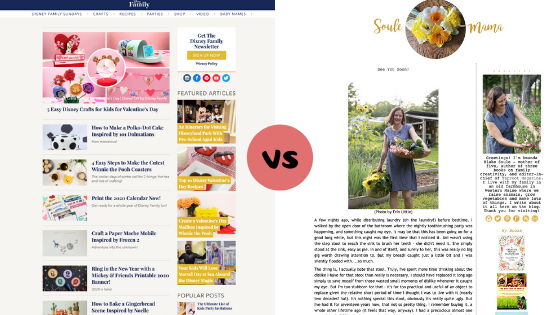 When you look at the Disney Blog on a phone verses a laptop, the content shifts around, but still is easy to navigate through and you don’t miss anything, but the Soulemama blog just shrinks everything so the long running blocks of text become very hard to read.