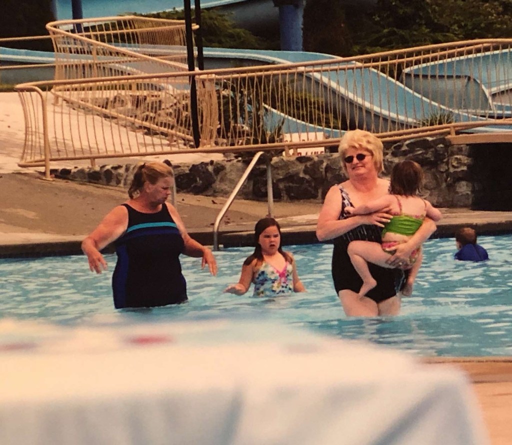 Mommom at the Waterpark in Canada. (left) – Mommom and I in Canada visiting her best friend, Sue. (right)